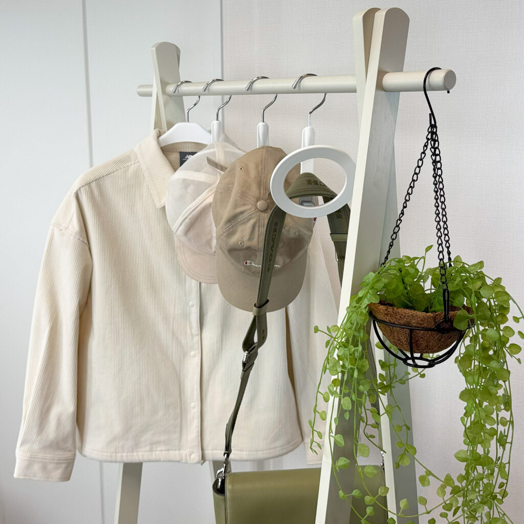 帽子、マフラー、スカーフなどの小物を繋げて掛けられるアイテム