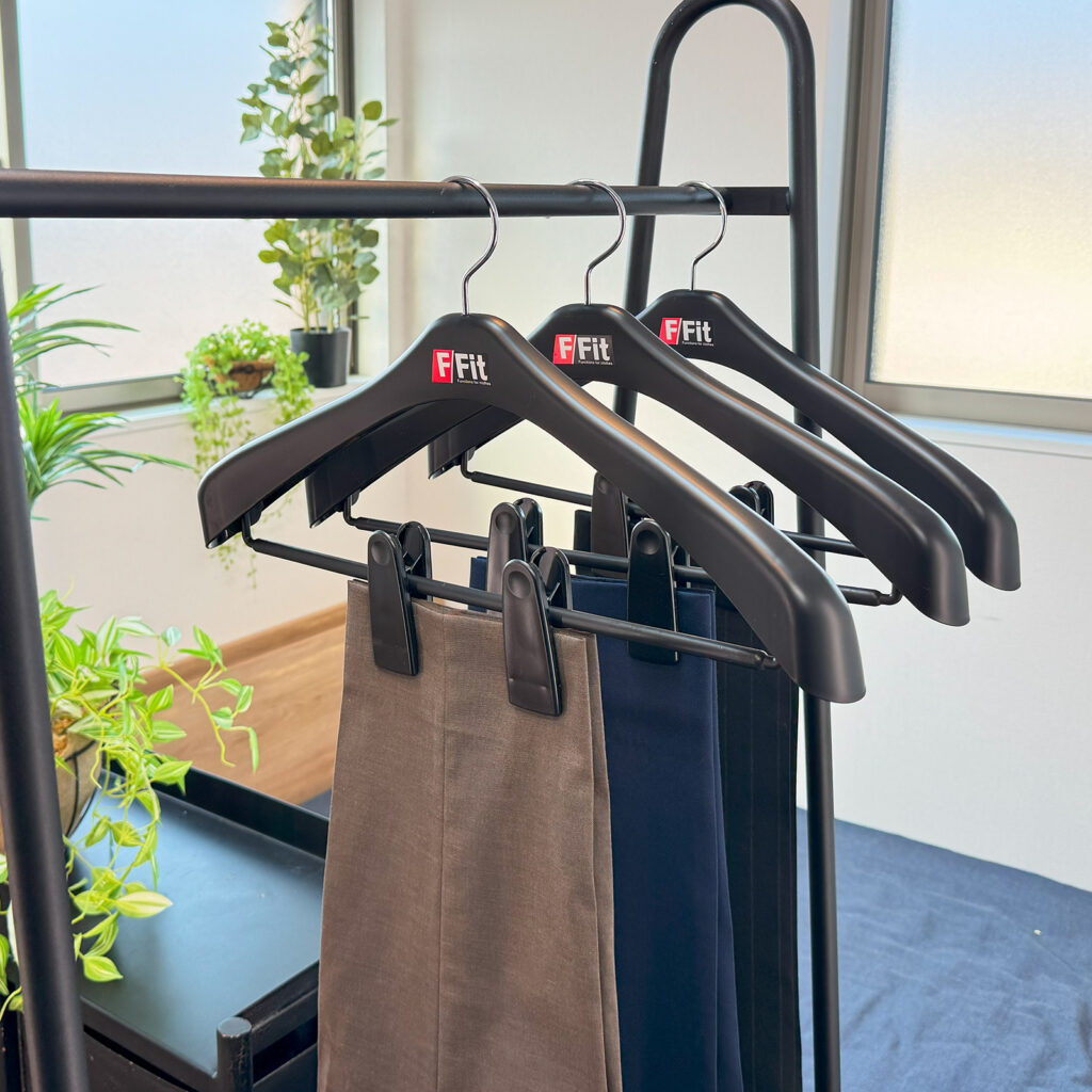 ボトムスの形をきれいに保ちながらしっかりクリップするジャケットハンガー!