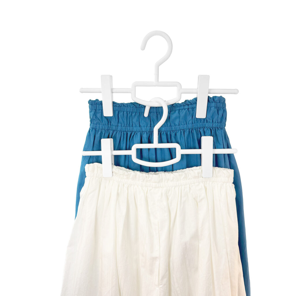 ロングクリップには滑り止めが付いており、スカートなどのボトムスをしっかりキャッチ。