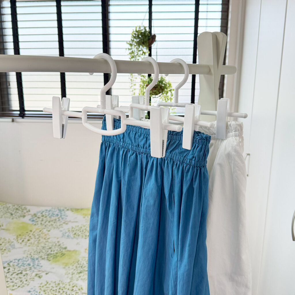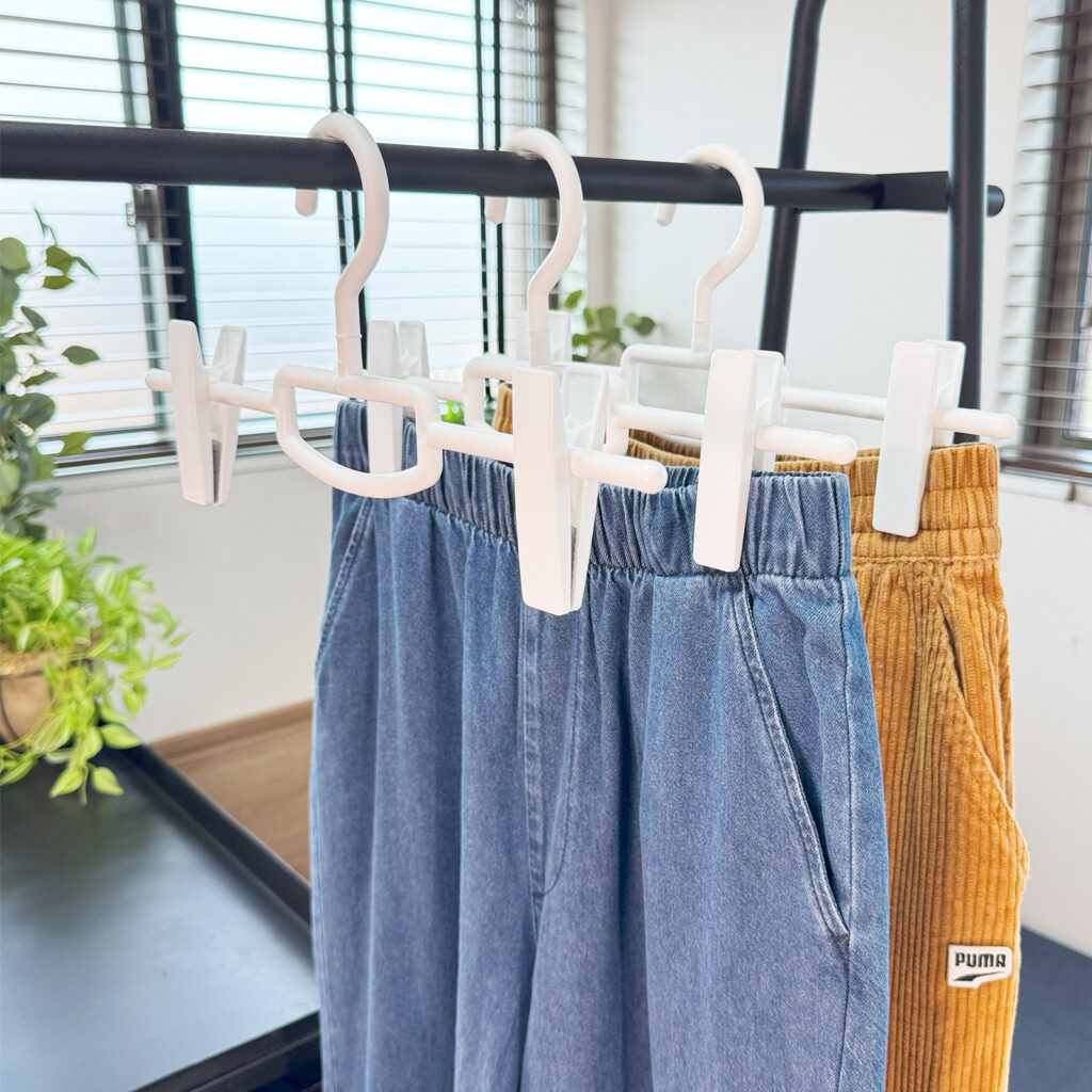 ロングクリップがボトムスをしっかり挟めるハンガー