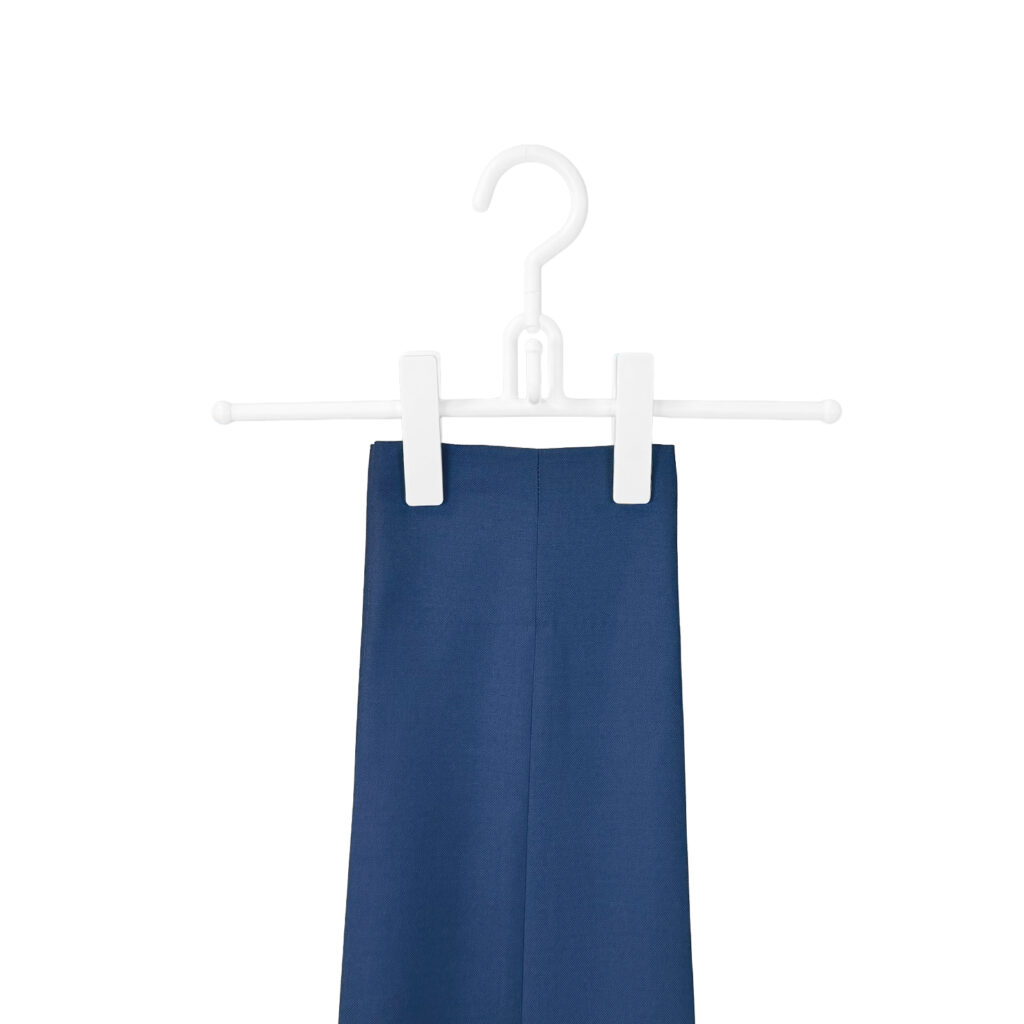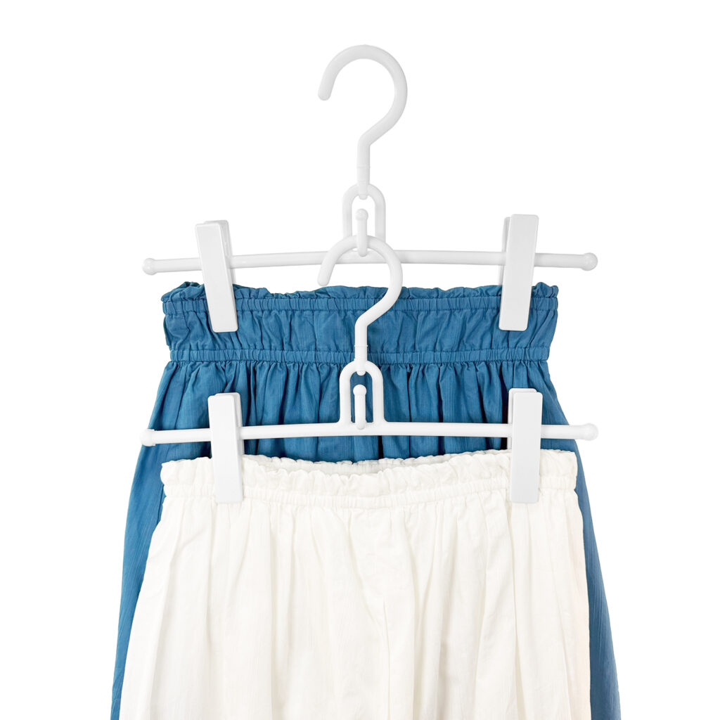 ホワイトカラーで衣類が引き立つ、スカート向けハンガー2本組。