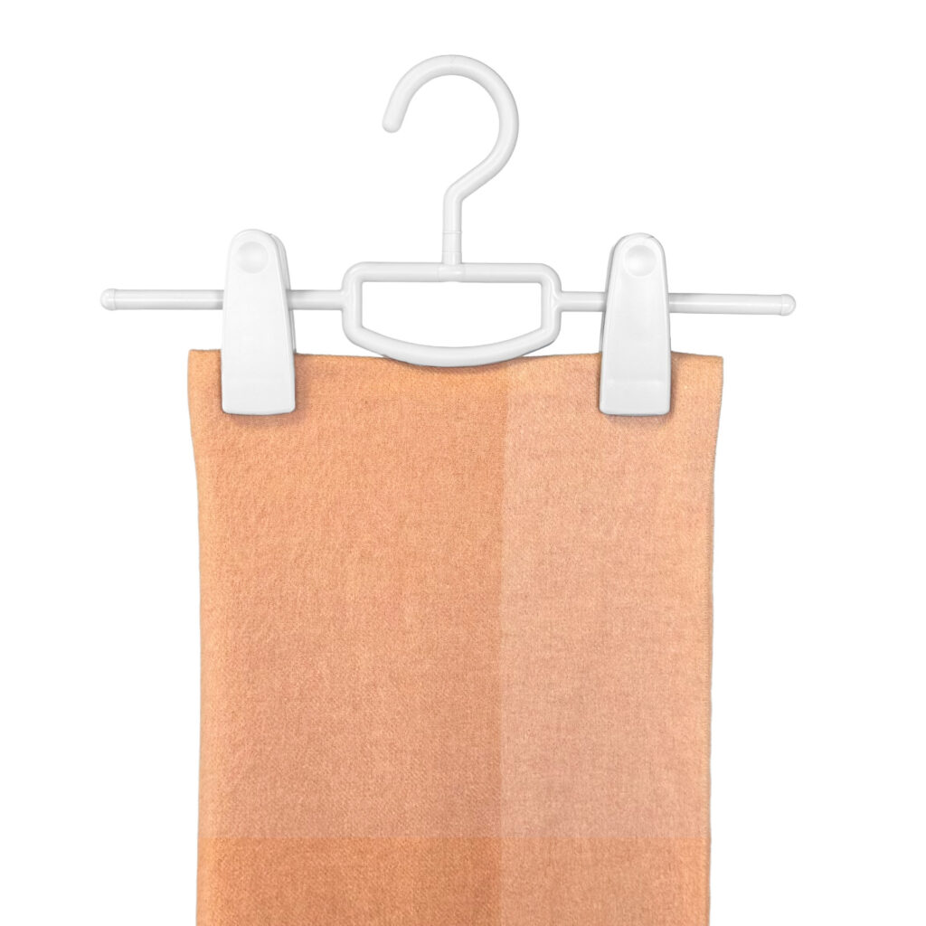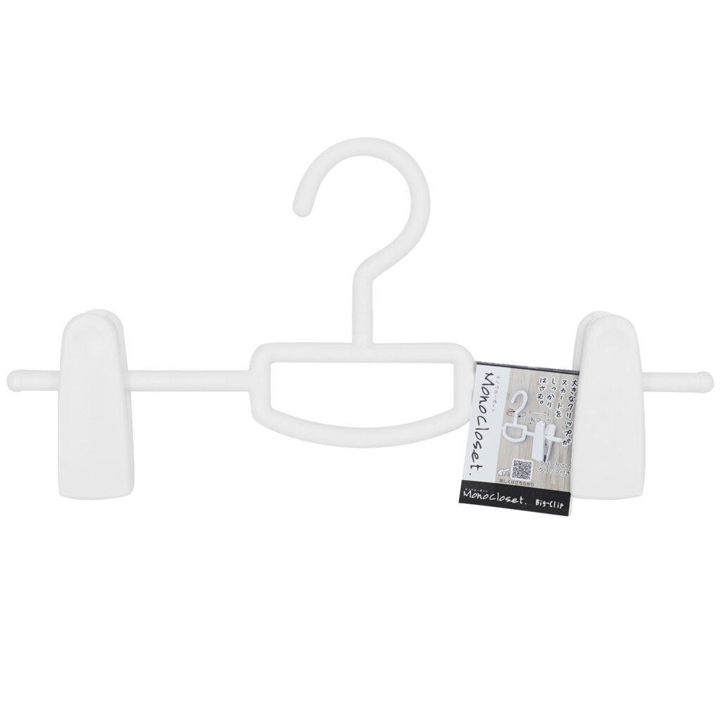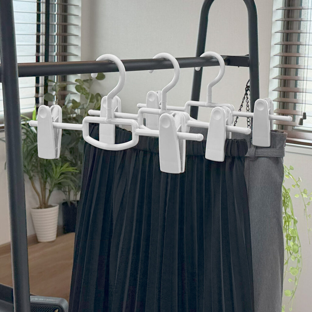 ホワイトカラーで衣類が引き立つ、スカート用ハンガー。