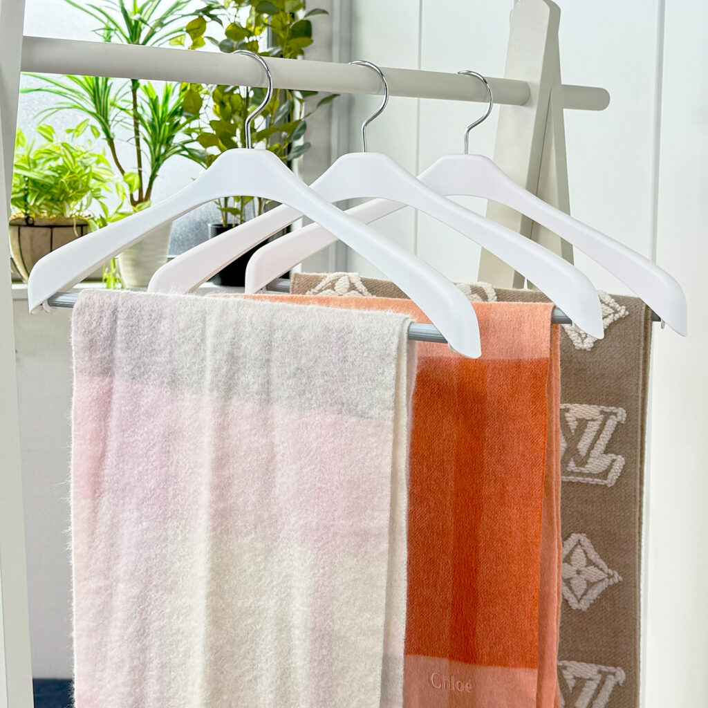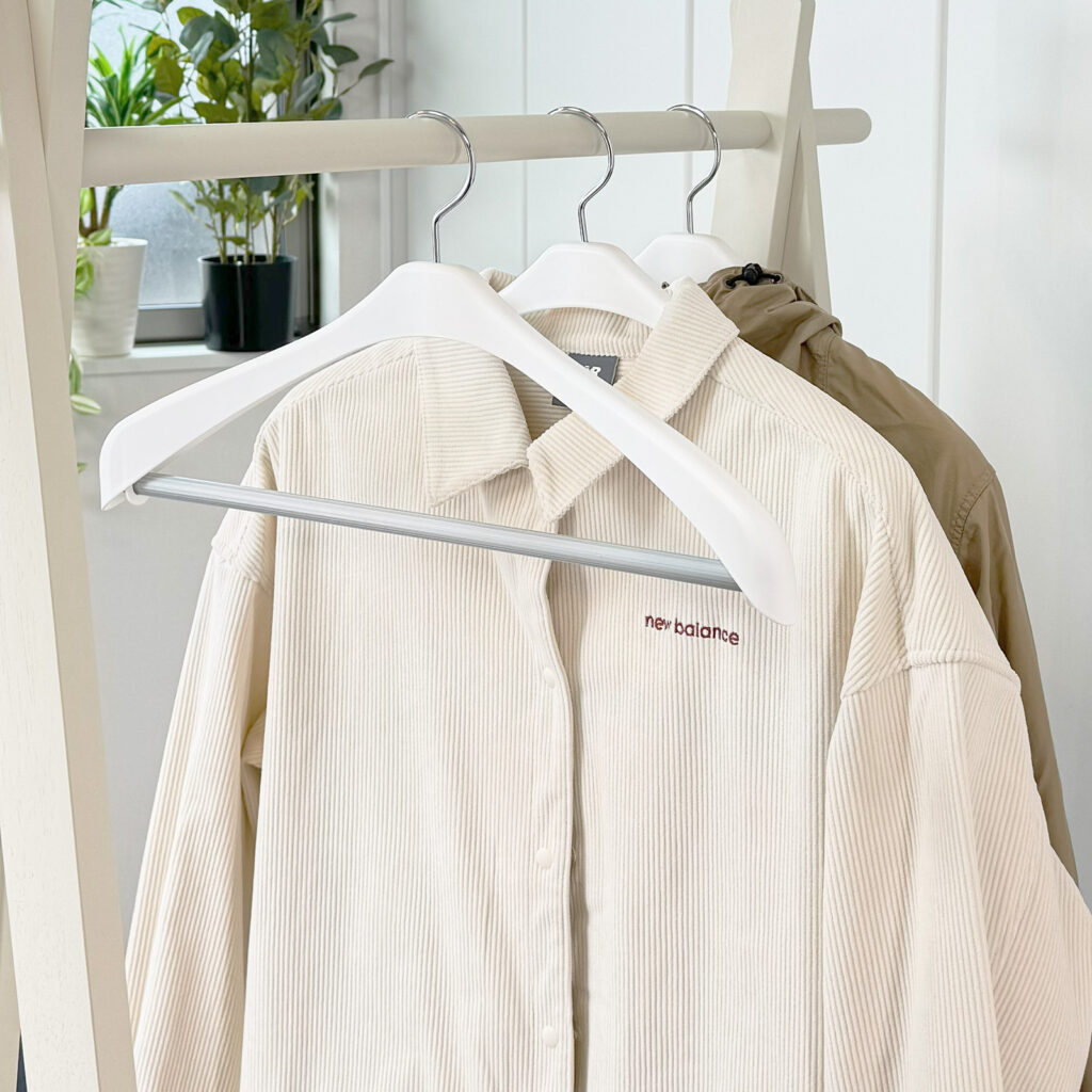 ホワイト&ライトグレーカラーで衣類が引き立つ、シャツ用ハンガー。