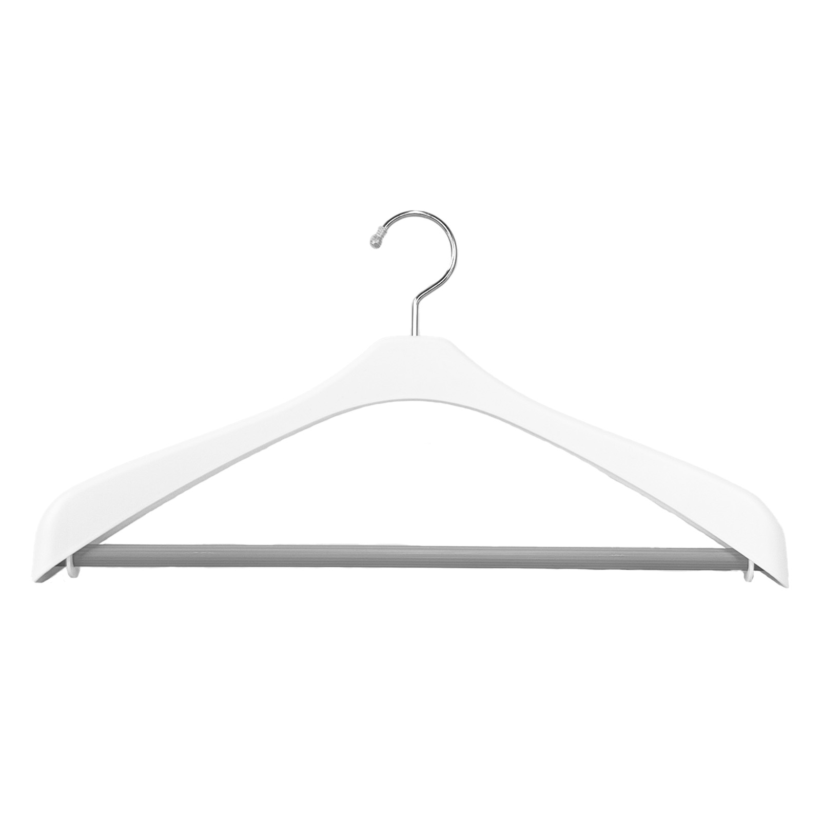 滑り止めのストップバーは、スラックスなどを掛けた際にずり落ちを防ぎます。