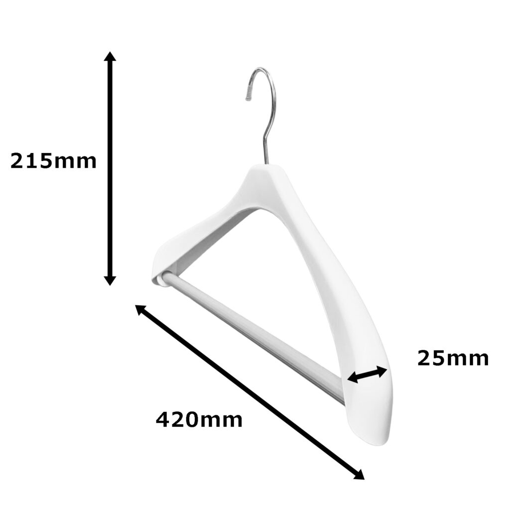 服の形にフィットする、丸みのある形状。ジャケットやスーツの型崩れを防ぎます。