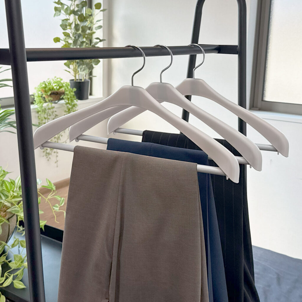 これにより、ジャケットやスーツの型崩れを防ぎます。
