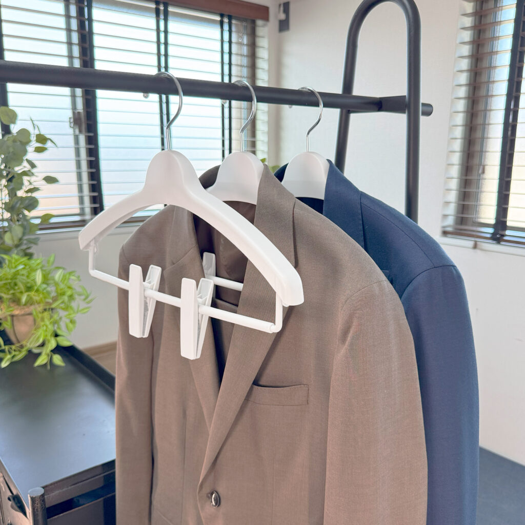 ほぼフラットな薄型タイプ。厚さ23mm、横並びで掛けた際に幅を取らず、収効率抜群。