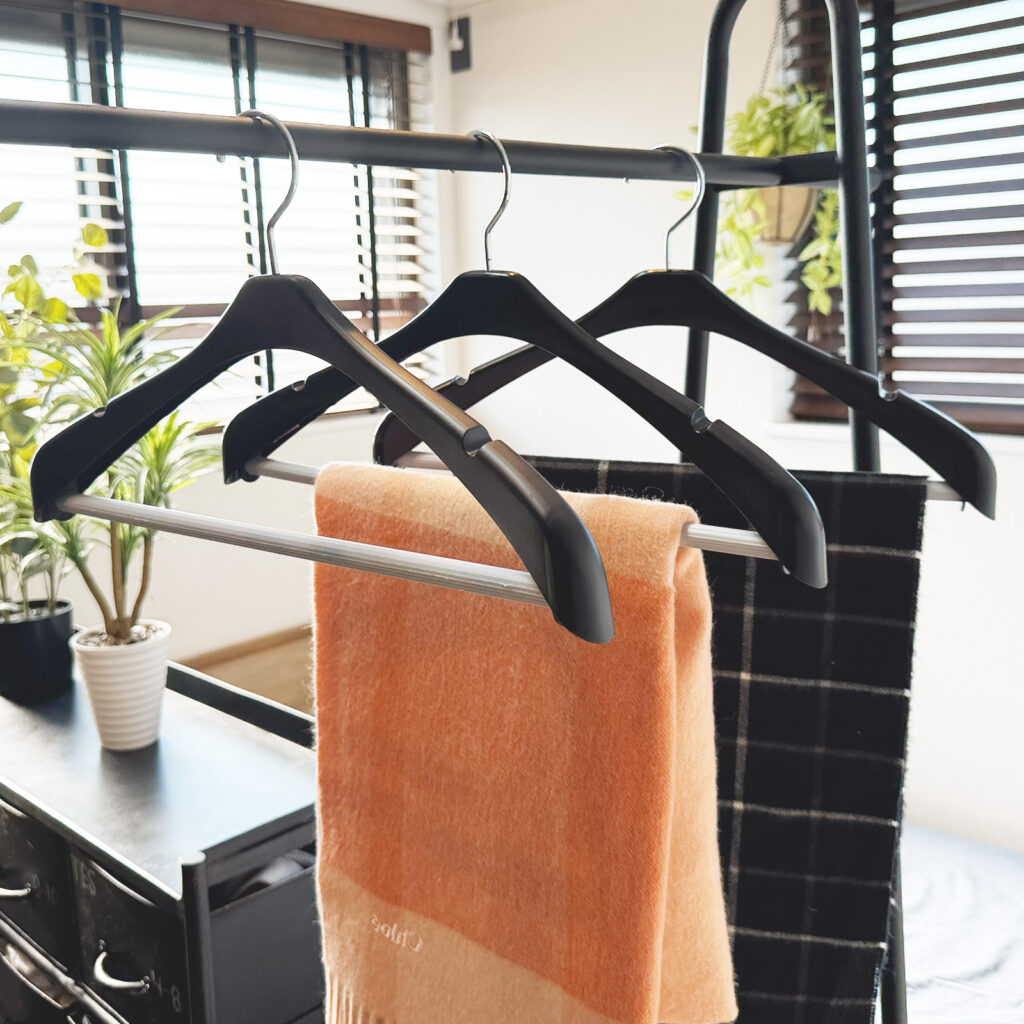 スリム設計で収納性が高く肩の切込みがパンツやスカートの紐を掛けるのに最適!